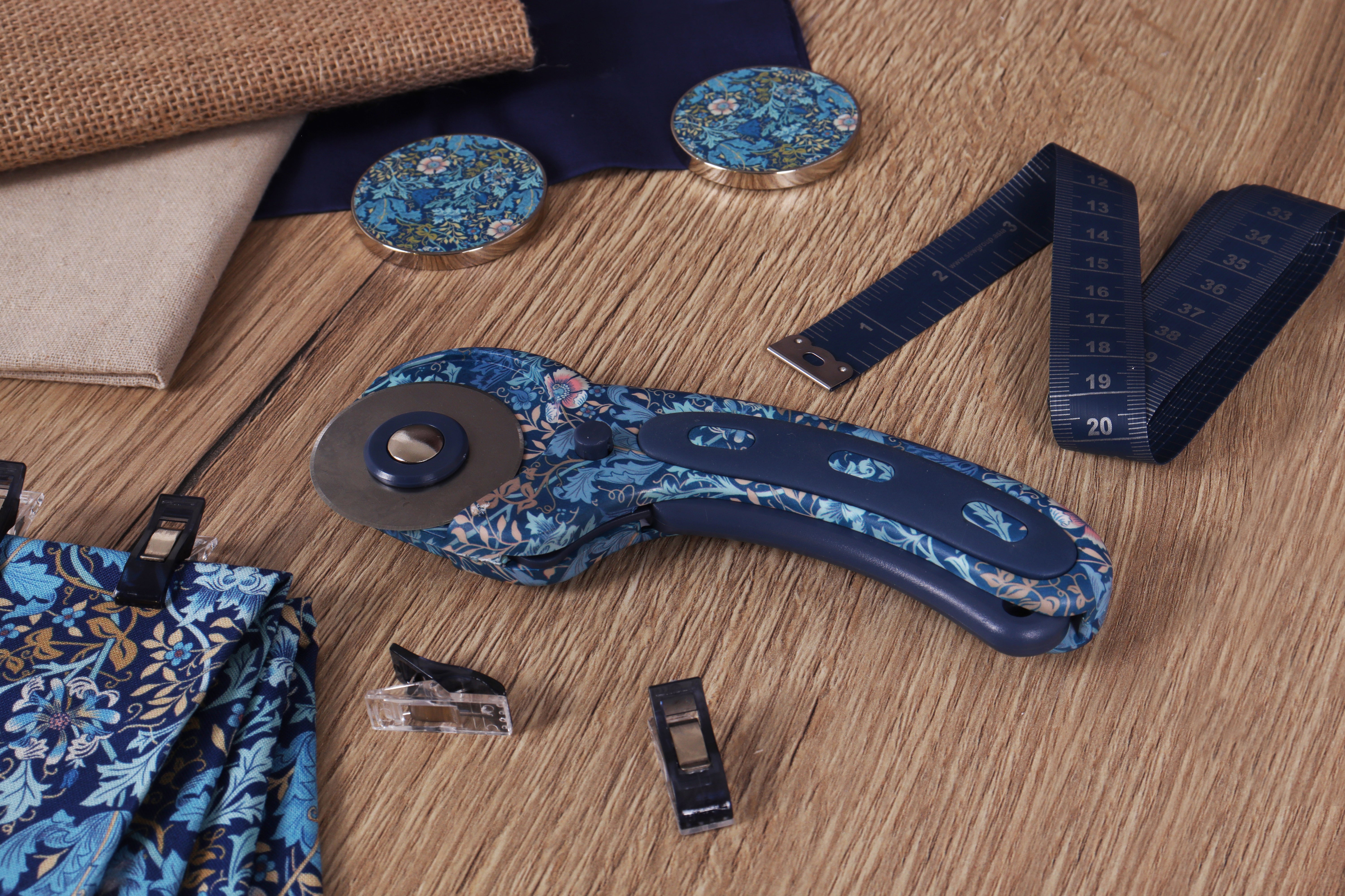 Cut through fabric with ease and precision using the Hobby Gift 45mm Rotary Cutter. Featuring a woodblock Arts & Crafts inspired printed design, this premium rotary cutter combines superior performance with beautiful design detail.