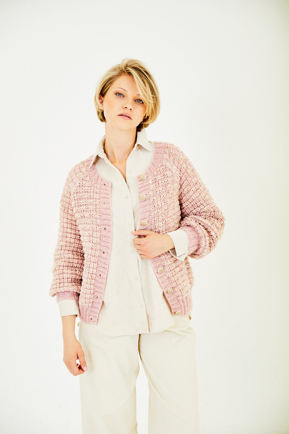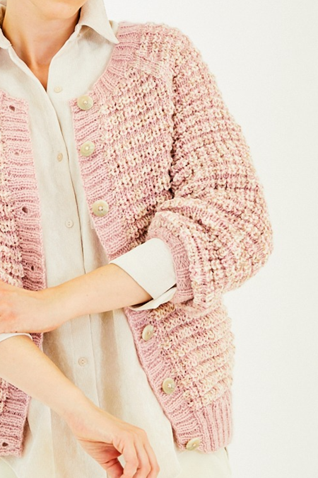 You will need: A pair of 4mm (UK 8 - USA 6) knitting needles, a pair of 5mm (UK 6 - USA 8) knitting needles, stitch holders. For Cardigan: 7 buttons, 1.5cm, ½in.