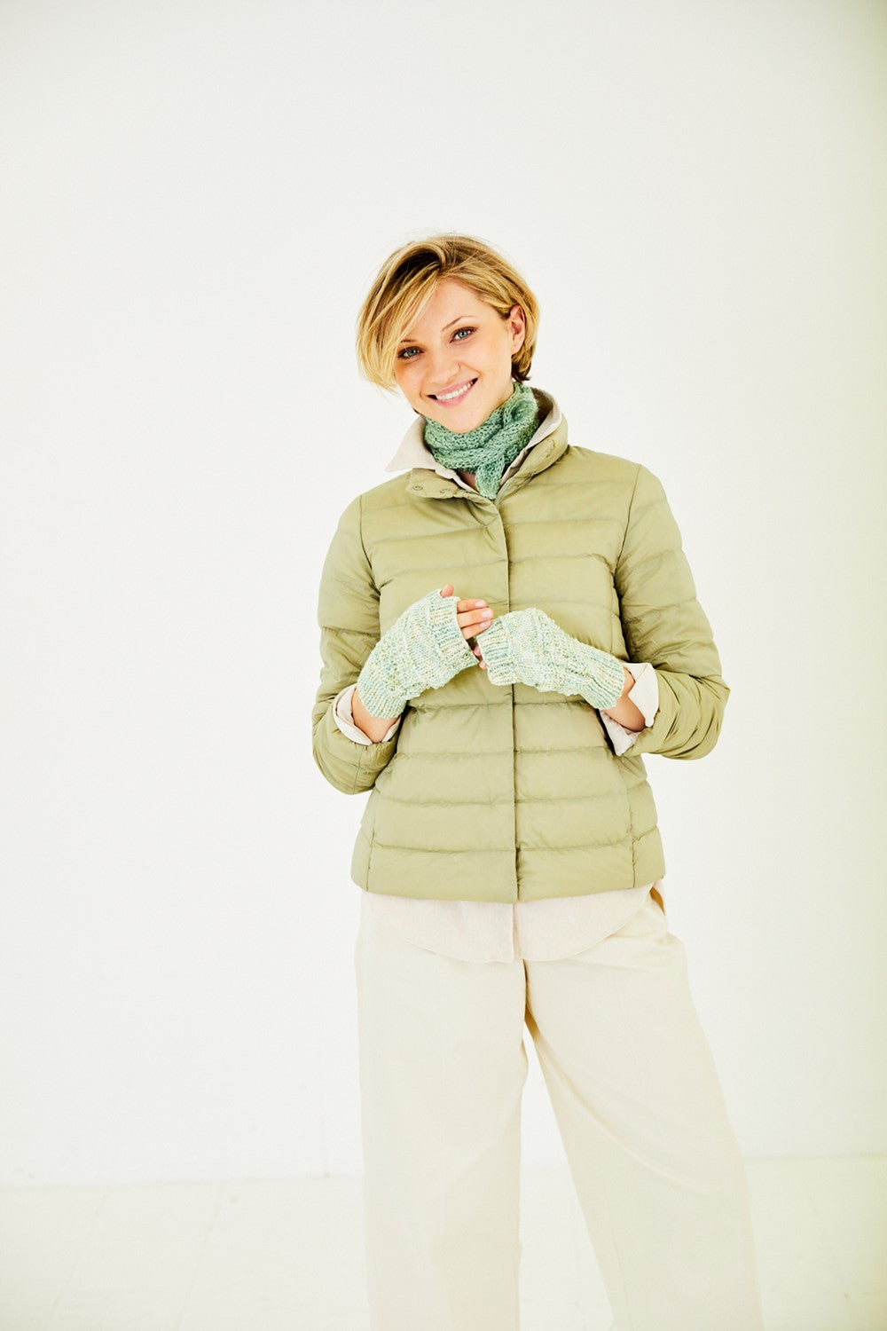 You will need: A pair of 5mm (UK 6 - USA 8) knitting needles. Also for Wristwarmers: a pair of 4mm (UK 8 - USA 6) knitting needles, stitch holder.